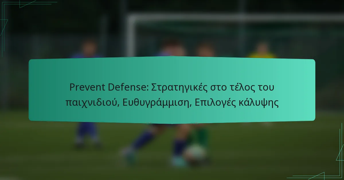 Η στρατηγική Prevent Defense είναι μια κρίσιμη τακτική που χρησιμοποιείται σε καταστάσεις στο τέλος του παιχνιδιού για να προστατεύσει ένα προβάδισμα περιορίζοντας τις ευκαιρίες σκοραρίσματος του αντιπάλου. Εστιάζοντας στις ευθυγραμμίσεις και τις επιλογές κάλυψης, αυτή η προσέγγιση αποσκοπεί στη μείωση των μεγάλων παιγνιδιών και στην υποχρέωση της αντίπαλης ομάδας να προχωρήσει με χρονοβόρες επιθέσεις. Η αποτελεσματική εφαρμογή απαιτεί επίγνωση της κατάστασης και προσαρμοστικότητα για να αντεπεξέλθει στις δυνάμεις της επίθεσης.